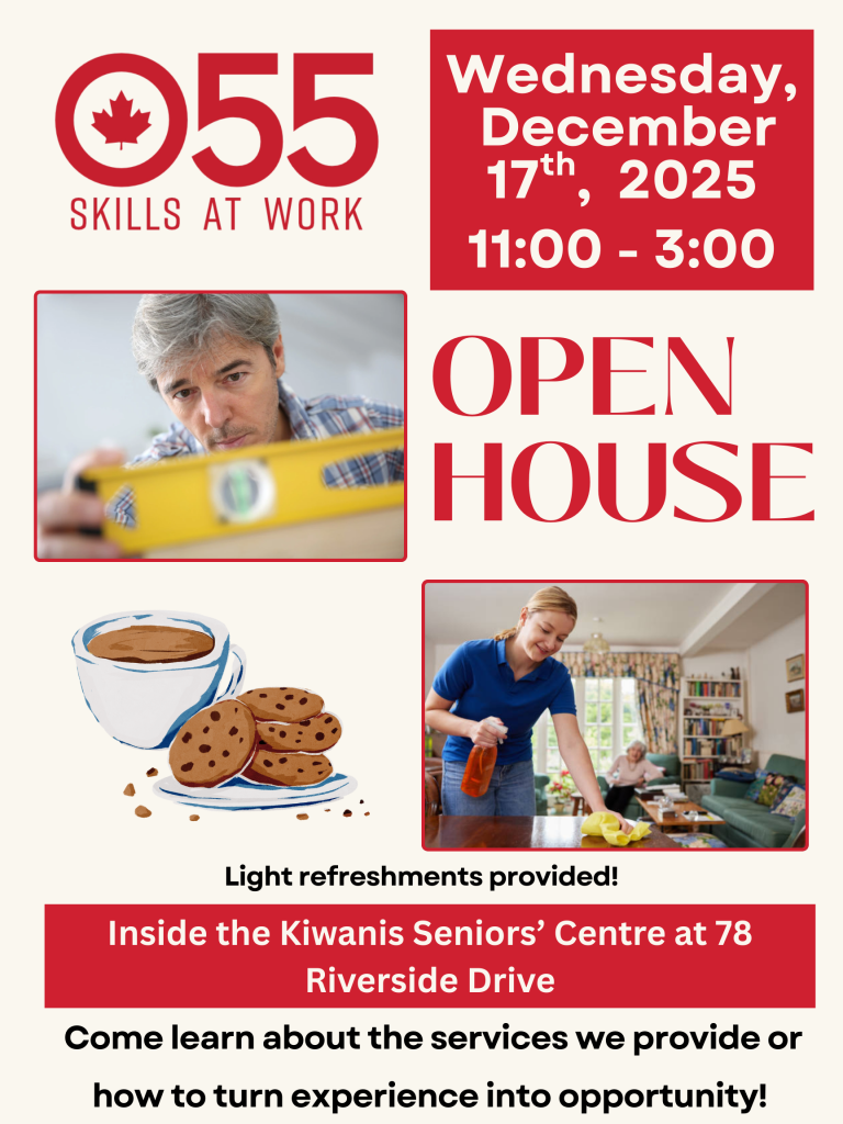 Hello community members! We are having an Open House event in our office located in the Kiwanis Senior Centre on December 17th from 11AM-3PM! Join us to learn about the services we can offer you or about opportunities for you to join as an associate and provide your services to our communities!